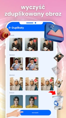 Czyszczenie: Czyściciel Pamięci Telefonu działa jak prawdziwy mistrz optymalizacji. Wyposażony w szereg zaawansowanych funkcji, błyskawicznie lokalizuje i usuwa zalegające pliki tymczasowe, niepotrzebne pliki APK oraz systemowe śmieci, które gromadzą się w pamięci podręcznej aplikacji. Dzięki inteligentnemu skanowaniu i funkcji czyszczenia jednym dotknięciem, zwolnisz cenną przestrzeń, zamkniesz aplikacje działające w tle, które obciążają pamięć RAM, i odzyskasz szybkość działania urządzenia. Dodatkowo, precyzyjny moduł wykrywania duplikatów pomoże Ci łatwo pozbyć się powtarzających się zdjęć i filmów, maksymalizując dostępną pamięć.