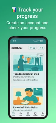 Odkryj fascynujący świat języka arabskiego marokańskiego (Darija) z DarijApp! Ta innowacyjna aplikacja sprawia, że nauka staje się przyjemnością, oferując krótkie, przystępne historie idealne dla początkujących. Każda opowieść wzbogacona jest o dwujęzyczne tłumaczenia na angielski, zintegrowane nagrania audio z autentyczną wymową oraz błyskawiczne testy, które utrwalają świeżo zdobytą wiedzę. Z łatwością przyswajasz nowe słownictwo w kontekście, jednocześnie doskonaląc rozumienie ze słuchu i precyzję wymowy.