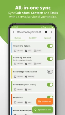 DAVx5 to Twój niezbędny towarzysz do łatwej synchronizacji kontaktów (CardDAV) i kalendarzy (CalDAV) na urządzeniu z Androidem. Bezproblemowo integruje się z Twoimi ulubionymi aplikacjami, zapewniając stały dostęp do aktualnych danych. Dbamy o bezpieczeństwo i prywatność, oferując niezawodne rozwiązanie do zarządzania informacjami.