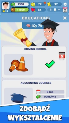 Rozpocznij swoją przygodę jako osoba bez środków do życia, dachu nad głową i pracy. Twoim pierwszym celem będzie przetrwanie i znalezienie sposobów na zdobycie pierwszych monet. Od szukania zajęcia, przez wspinaczkę po szczeblach kariery korporacyjnej, aż po edukację, która otworzy Ci drzwi do wyższych zarobków. Możesz również spróbować szczęścia na giełdzie lub w kasynie. Każda decyzja kształtuje Twoją drogę od ubóstwa do dobrobytu, w tym realistycznym symulatorze życia mobilnego.