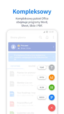 Przenieś swoje biuro w każde miejsce z Polaris Office – wielokrotnie nagradzanym, wszechstronnym pakietem, który zrewolucjonizuje Twoją pracę mobilną. Uznany przez Google Play jako „Wybór Redakcji", „Najlepsza Aplikacja 2015" oraz „Najlepszy Dostawca Aplikacji", Polaris Office integruje wszystkie niezbędne narzędzia do tworzenia i edycji dokumentów. Zapomnij o wielu aplikacjach! Ważąc zaledwie 60 MB, Polaris Office oferuje pełną funkcjonalność MS Word, Excel, PowerPoint oraz Adobe PDF w jednym, intuicyjnym środowisku, zapewniając pełną zgodność i płynność pracy na urządzeniach z systemem Android.