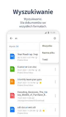 Pracuj efektywnie, gdziekolwiek jesteś. Twoje dokumenty w Polaris Office są zawsze aktualne i dostępne na każdym urządzeniu – komputerze, tablecie czy telefonie – dzięki synchronizacji z Polaris Drive oraz innymi chmurami, takimi jak Google Drive, Dropbox, Box czy OneDrive. Nasza zaawansowana wyszukiwarka pozwoli Ci błyskawicznie odnaleźć dowolną frazę w setkach dokumentów. Ułatwiaj współpracę, udostępniając linki do plików SMS-em, e-mailem czy przez media społecznościowe. Komentuj pliki PDF, recenzuj wersje robocze i komunikuj się z zespołem bezpośrednio w aplikacji, usprawniając proces tworzenia i akceptacji. Bezpieczeństwo Twoich danych gwarantuje certyfikat ISO 27001, potwierdzający najwyższe standardy prywatności.