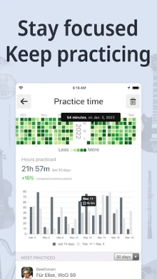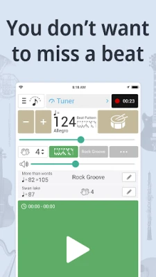Wszechstronność tej platformy wykracza poza standard, obejmując szerokie wsparcie dla niemal wszystkich instrumentów – od fortepianu, gitary czy ukulele, po mandolinę, skrzypce, wiolonczelę, flet, harmonijkę ustną i bębny. Specjalne udogodnienia przewidziano także dla instrumentów transponujących, takich jak klarnet B, trąbka F czy saksofon E. Niezależnie od tego, czy szlifujesz gamy, precyzyjnie kontrolujesz tempo BPM, czy potrzebujesz licznika uderzeń, ta aplikacja dostarcza kompleksowego zestawu narzędzi do każdego aspektu Twojej praktyki muzycznej. To Twoje wszechstronne centrum dowodzenia, które towarzyszy Ci na każdym etapie muzycznej podróży, oferując niezrównaną dokładność i intuicję.